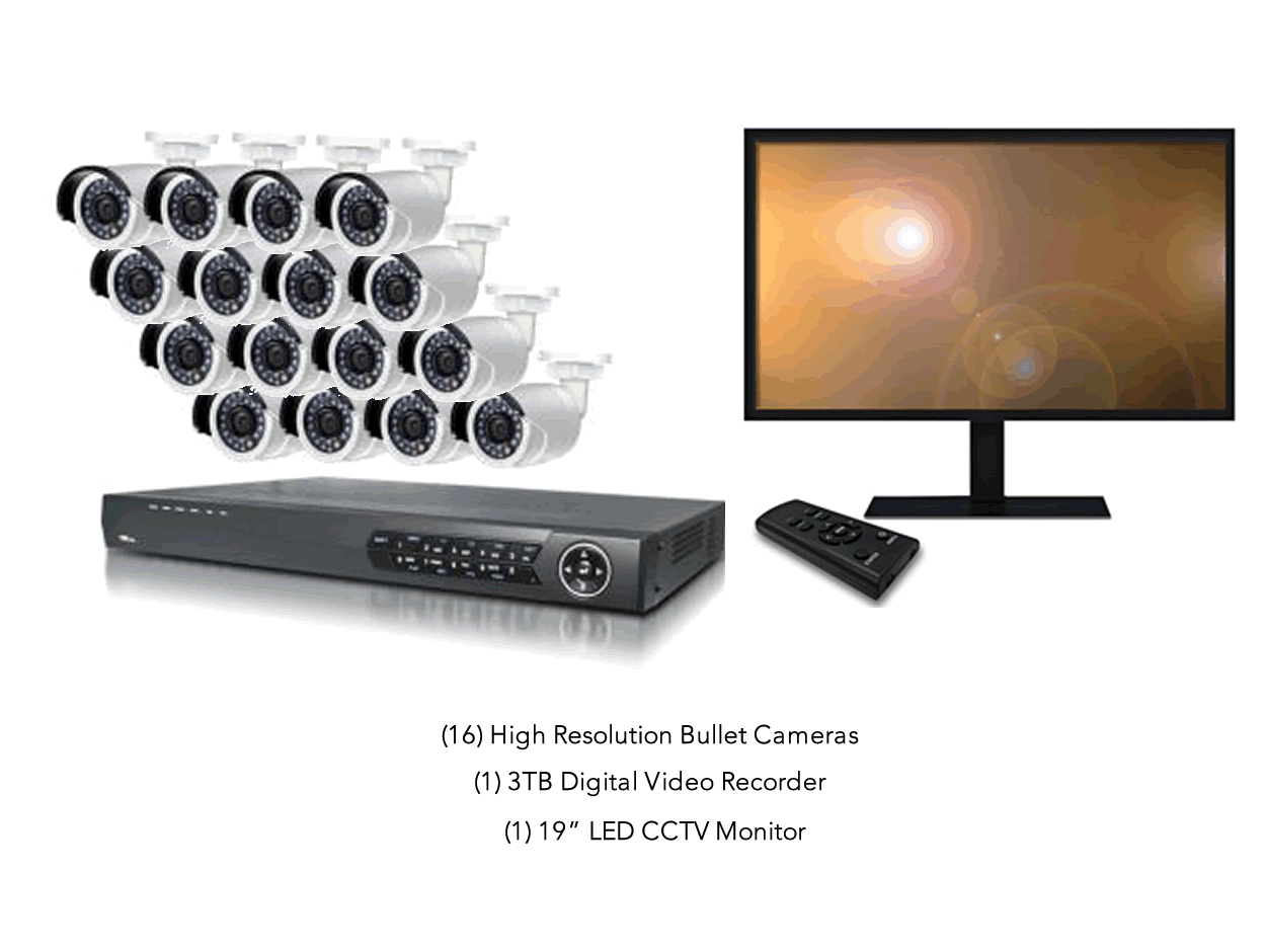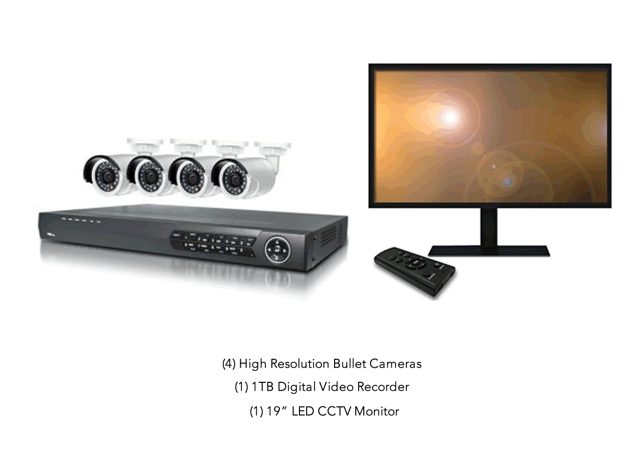 - (1) Network Video Recorder w/3TB Hard drive(record up to 1 week)