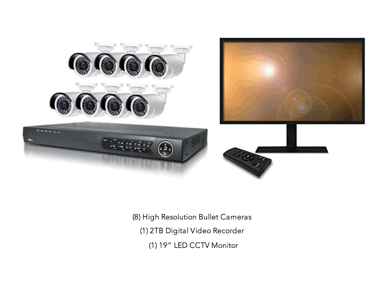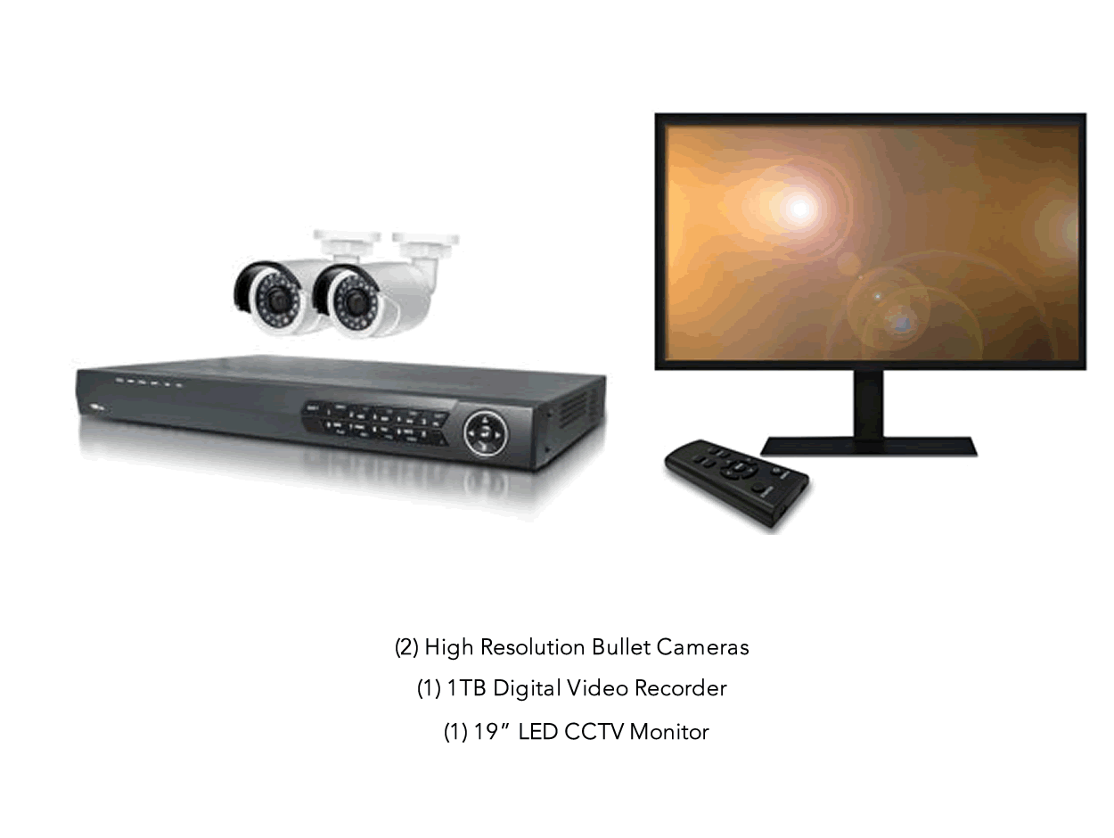 - (1) Network Video Recorder w/2TB Hard drive(record up to 1 week)
